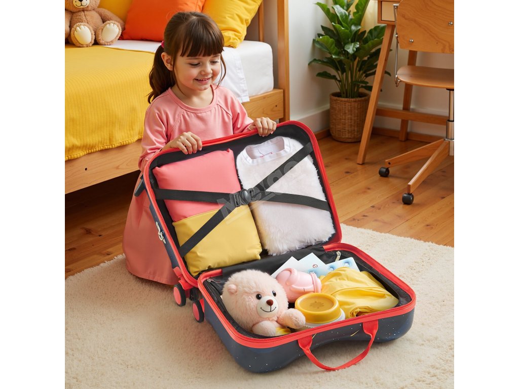 Do tohoto kufru "vše v jednom" s koloběžkou uložíte oblečení a hračky vašeho dítěte a snadno ho přenesete na palubu nebo do auta. Hladce se kutálí na čtyřech kolečkách, takže cesty z letiště do parku budou hračkou!