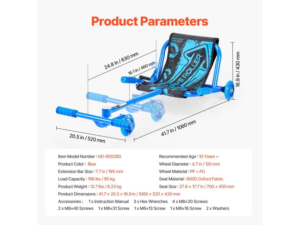 Jízdní driftovací vozítko se zig-zag pohonem, nosnost 198 lbs, 10+
