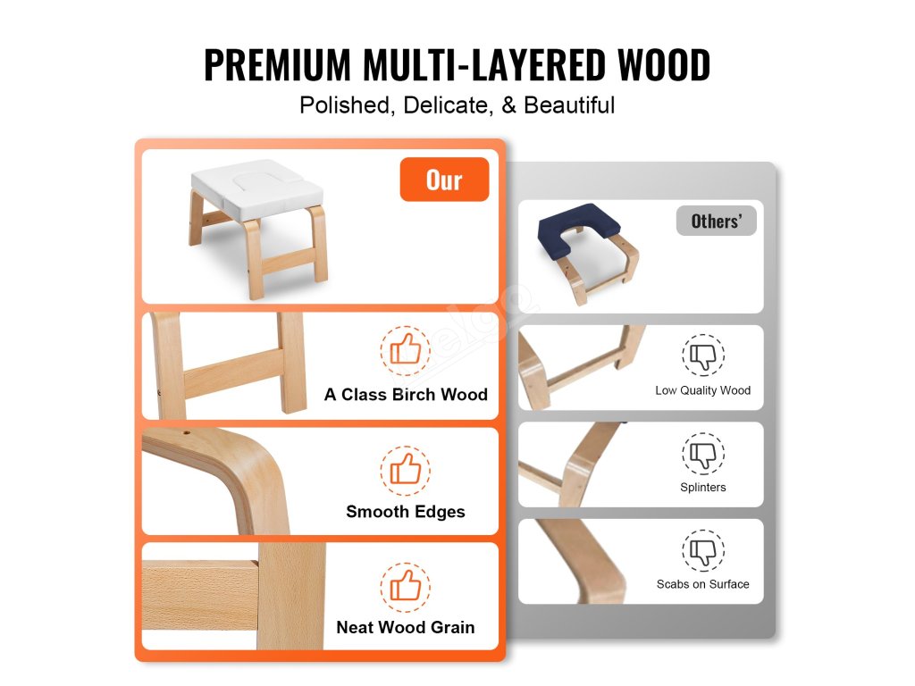 Obrácená židle na jógu vyrobená z březového dřeva třídy A má leštěnou, měkkou a atraktivní povrchovou úpravu. Díky hladkým hranám a hladké struktuře dřeva dodá každému studiu jógy nebo domácí tělocvičně nádech elegance.