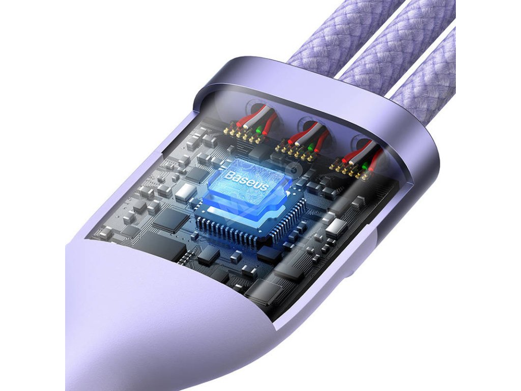 Kabel USB 3 v 1 Baseus Flash Series 2, USB-C + micro USB + Lightning, 100 W, 1,5 m (fialový)