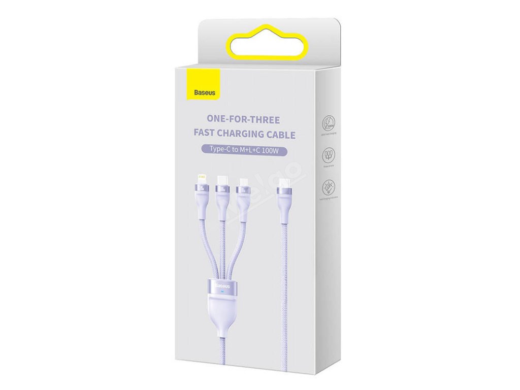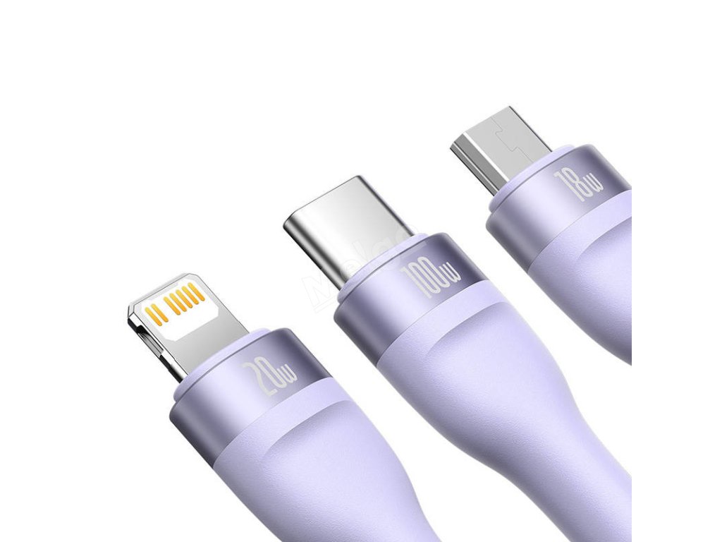 Kabel USB 3v1 Baseus Flash Series 2, USB-C + micro USB + Lightning, 100 W, 1,5 m (fialový)