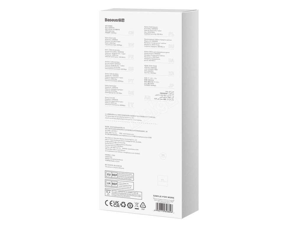 Užívejte si rychlé nabíjení zařízení a přenášejte soubory během okamžiku. Kabel Baseus Tungsten Gold poskytuje výkon až 240 W a přenosová rychlost, kterou nabízí, dosahuje 480 Mb/s. Výrobek je také mimořádně trvanlivý a odolný proti poškození. Vyznačuje se také širokou kompatibilitou - bez problémů nabije většinu zařízení vybavených portem USB-C.