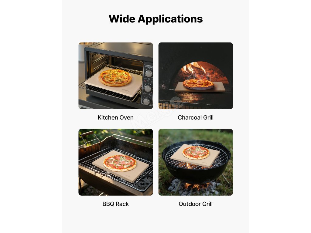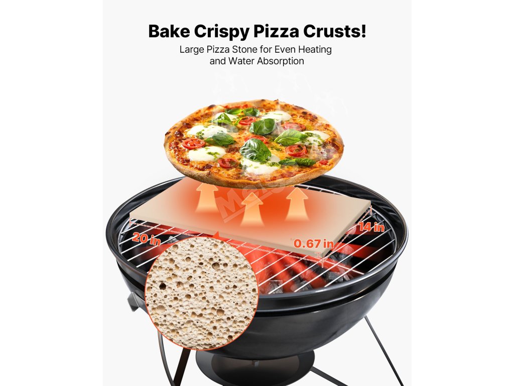 Tento velký pečicí kámen lze použít k přípravě pizzy, chleba, sušenek a dalších pochoutek nebo k ohřívání pokrmů pro obnovení jejich křupavé struktury. Ať už v domácí kuchyni nebo při venkovním grilování, vše bude díky němu chutnější!