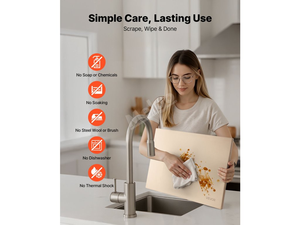 Tento obdélníkový pečicí kámen, který se snadno používá a vyžaduje jen několik kroků, vyžaduje po použití pouze vodu na čištění a rychle schne, takže se snadno skladuje a snadno udržuje.