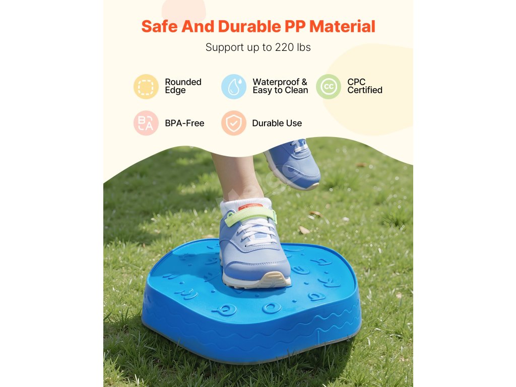 Tyto stupínky pro batolata mají silikonové protiskluzové kroužky, texturované vrchní části a protiskluzové ponožky - trojnásobnou ochranu pro bezpečnou hru. Rodiče, uvolněte se a nechte své děti, ať se bez obav baví!