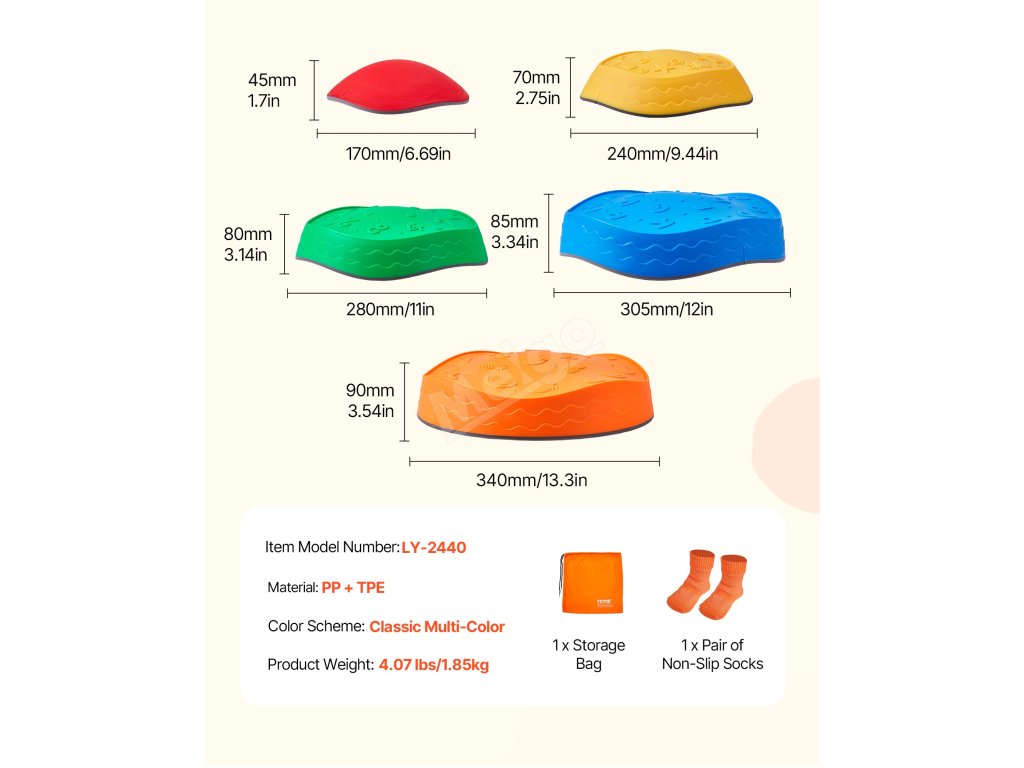 Kameny na balancování pro děti, 5 ks, protiskluzové, 220 lbs, 3+ let