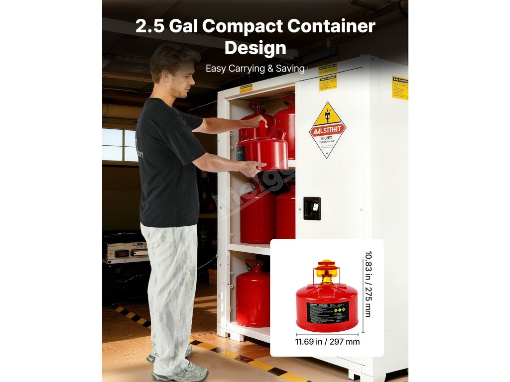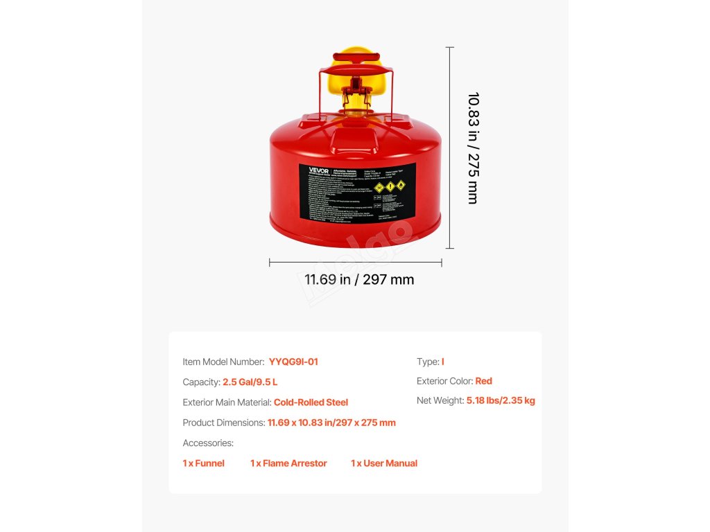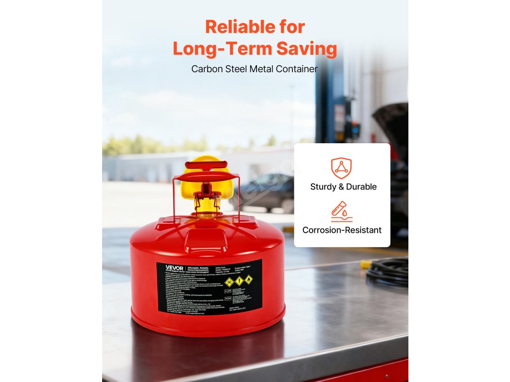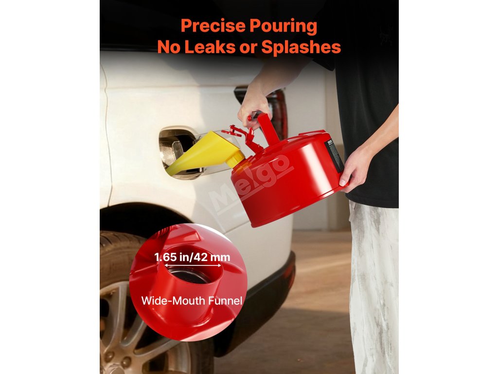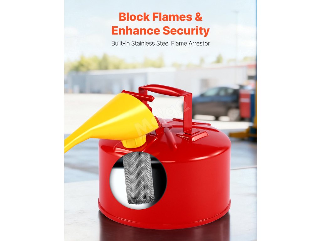 Náš 2,5litrový červený bezpečnostní kanystr na plyn typu I má netěsné pružinové víko, které se při převrhnutí automaticky uzavře. Její odolný kovový materiál je pevný a odolný proti korozi, včetně pojistky proti jiskrám, která blokuje vnější plameny, a přesné, hladké plnicí nálevky.