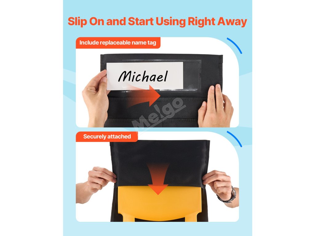 Naše školní pouzdro na židli obsahuje průhledný otvor na jméno z PVC pro snadné přizpůsobení. Nechte děti navrhnout vlastní jmenovky a udělejte si třídu zábavnější a osobnější!