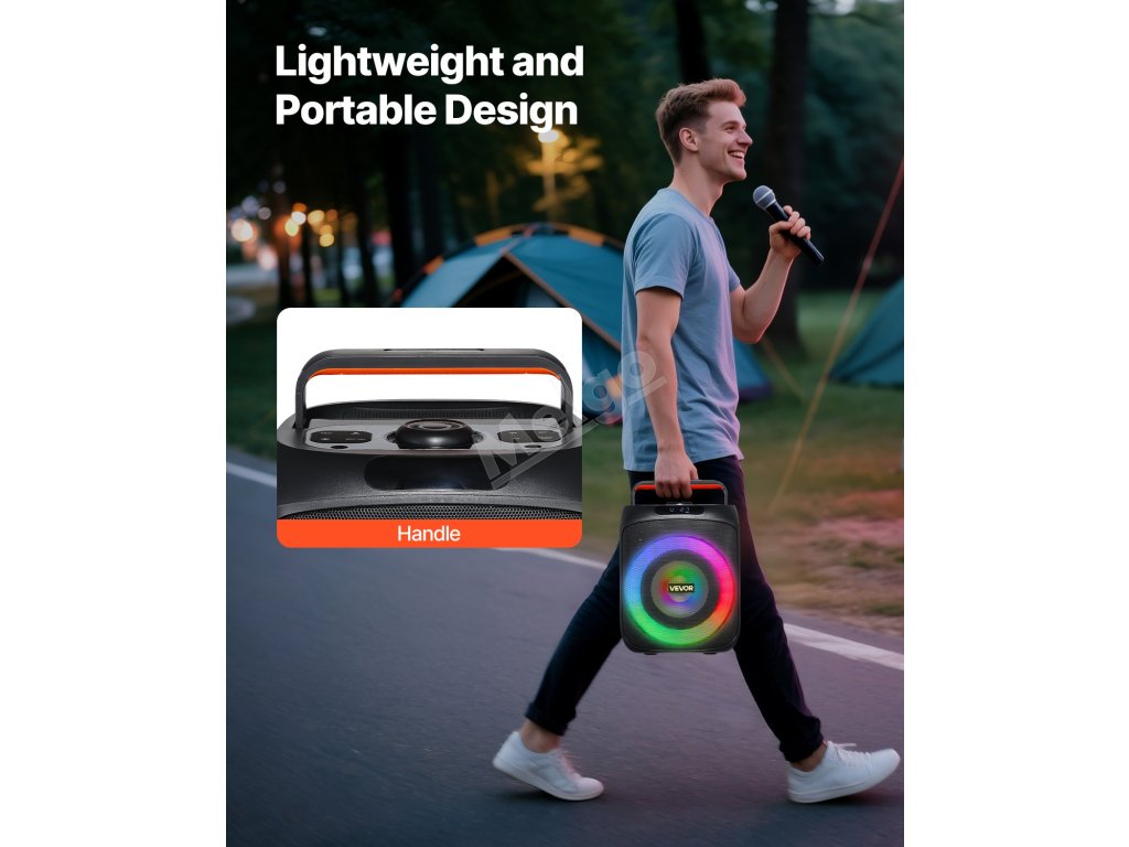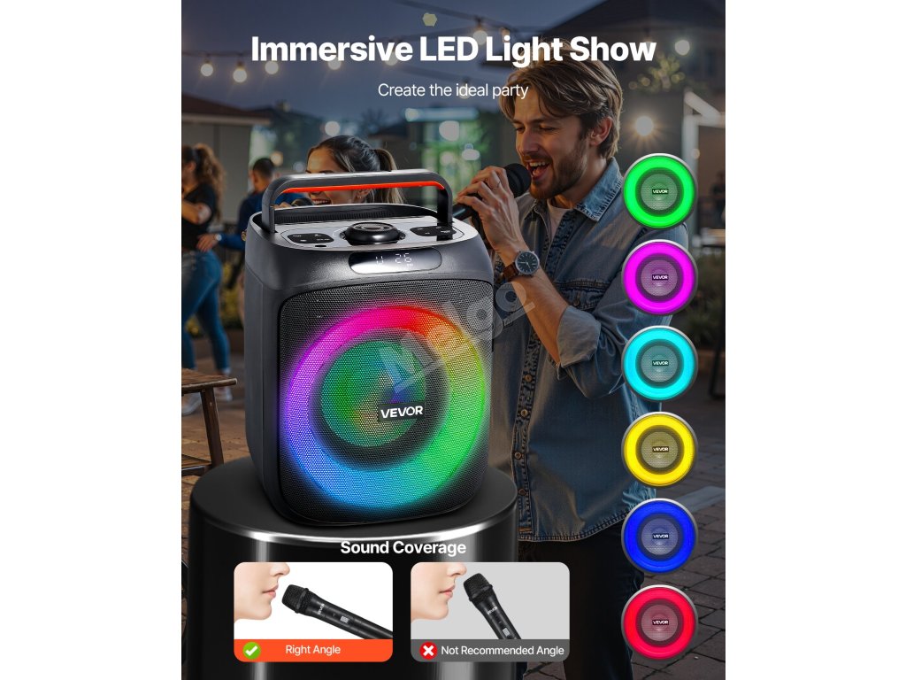 Náš přenosný karaoke stroj je určen pro domácí zábavu a malé až středně velké společenské akce. Díky 2 bezdrátovým mikrofonům a připojení 5.1 TWS Bluetooth můžete zpívat spolu s hudebním doprovodem a užívat si karaoke v profesionální kvalitě kdekoli a kdykoli.