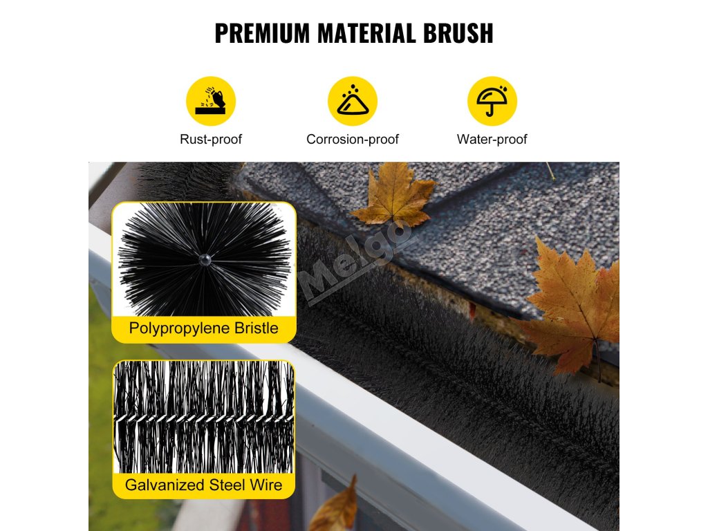 Kartáč ve tvaru válce je skvělou volbou pro plnění žlabů čtvercového tvaru. Vložky kartáče se vkládají do žlabu, aby se neucpával a abyste nemuseli trávit čas na nebezpečných žebřících.
