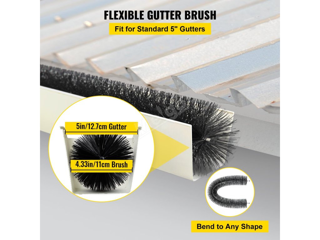 Ochranná lišta o průměru 4,33 cm funguje u 5" žlabů typu k, fasádních žlabů a kulatých žlabů. Kartáč je vhodný i pro některé žlaby na míru, a to zkrácením délky a ohnutím do libovolného tvaru.