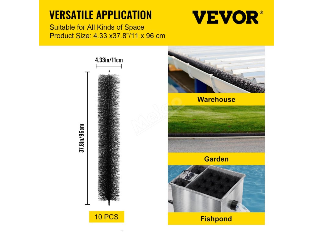 Kartáč na ochranu proti listí pro okapy lze použít v širokém rozsahu, například pro okapy na zemi, střešní okapy a jezírkové filtry (pro rodinná i průmyslová jezírka).