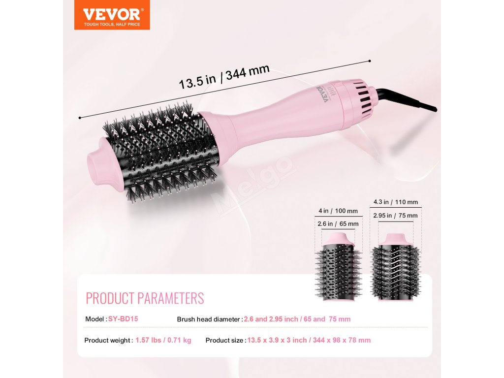 S fénovacím kartáčem VEVOR můžete snadno dosáhnout vysoušení, kulmování, narovnávání a zvětšování objemu vlasů, a splnit tak všechny své kadeřnické potřeby. Je vybaven 2 kartáčovými hlavami (2,6palcovou a 2,95palcovou), pokročilým galvanizovaným titanem, keramickým povrchem a 30W+ zápornými ionty, takže účinně snižuje poškození teplem a zároveň uzamyká vlhkost.