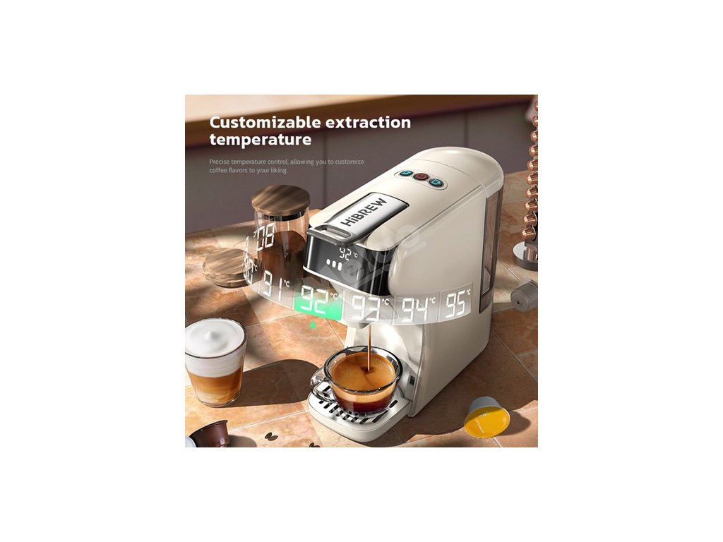 Kávovar na kapsle HiBREW je vybaven vysokotlakým čerpadlem a technologií spirálového ohřevu, která zajišťuje sílu 19 barů a přibližně 161,6℉ ohřevu. Stabilní tlak zajišťuje vysoce kvalitní extrakci z kávové kapsle/prachu a umožňuje vám vychutnat si espresso s bohatou pěnou při každé přípravě.