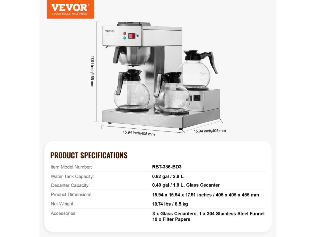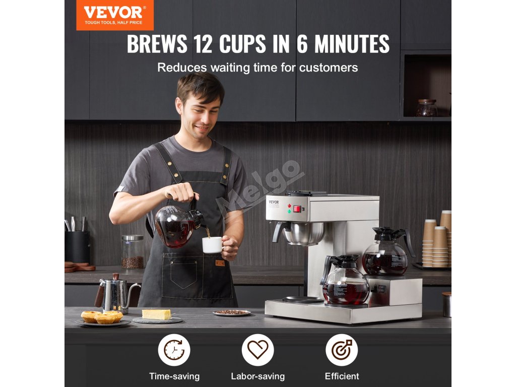 Tento komerční překapávací kávovar dokáže uvařit celou konvici kávy za méně než 10 minut a uspokojí potřeby 12 až 13 osob najednou. Už se nemusíte obávat dlouhých front!