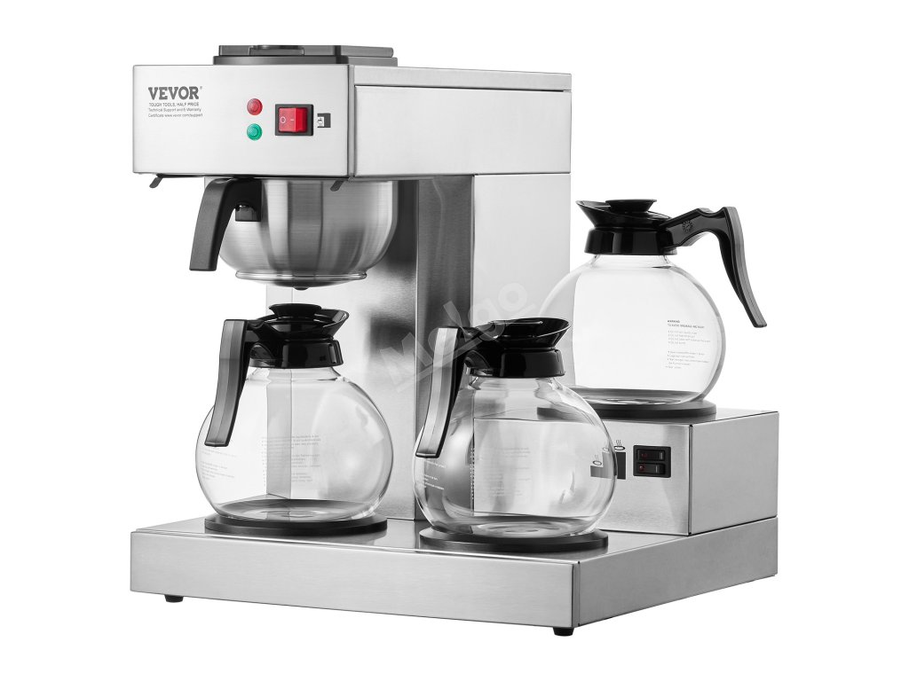 Kávovar pro 12 šálků, 3 karafy, 3 ohřívače, nerez, automatický přívod