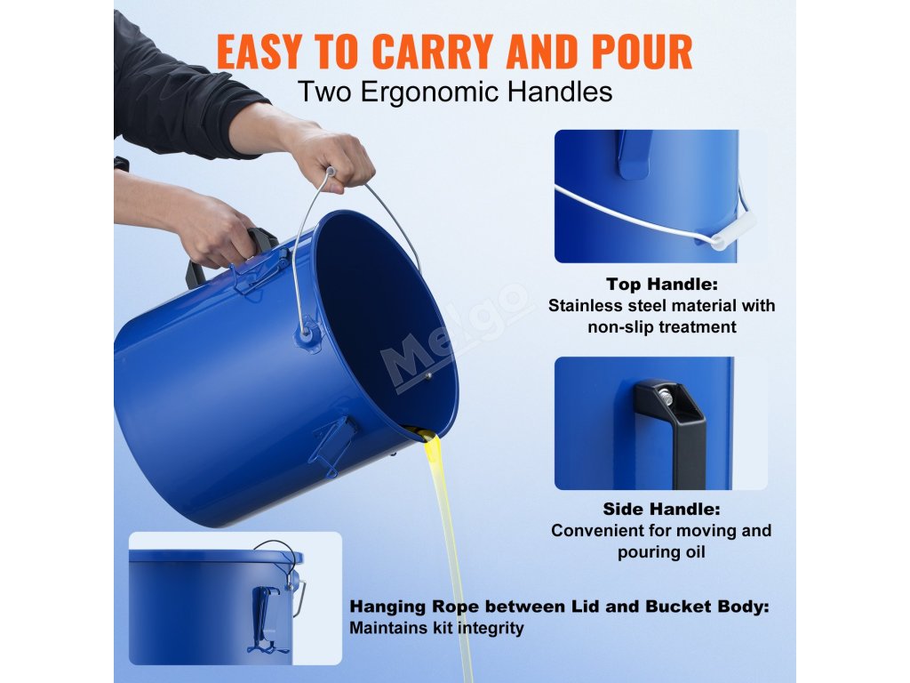 Už vás nebaví neustále vysypávat koš na odpadky? Náš kbelík na tuk z fritézy vám kryje záda díky své obrovské kapacitě. Je ideální pro kuchyně, protože díky němu je filtrování, skladování a přemísťování oleje hračka!