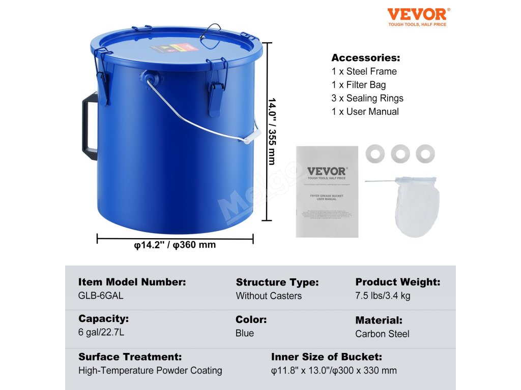 Kbelík na tuk z fritézy VEVOR - snadný sběr kuchyňského oleje