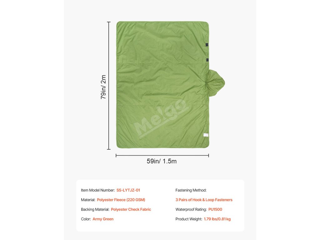 Proměňte svůj zážitek z kempování s touto kempingovou dekou, která se snadno promění v příjemnou pláštěnku nebo pončo. Je vyrobena z měkkého polyesterového rouna 220GSM a nabízí vynikající větruodolné a nepromokavé vlastnosti. Díky rozměrům 79" x 59" je také lehká a snadno se skladuje.