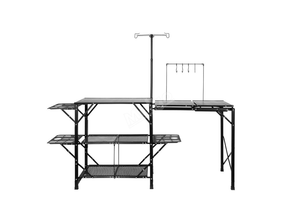 Nie je určený len na varenie. Má tri bočné stolíky, dve police a drez. Vďaka tomu je dostatočne univerzálna na rôzne úlohy. Na háčiky možno umiestniť náčinie, svietidlá alebo uteráky. Zvyšujú jeho funkčnosť. Hoci nohy nie sú nastaviteľné, stôl môžete ľahko vyrovnať pomocou vyrovnávacích podložiek alebo malých kamienkov. Táto všestrannosť teda znamená, že sa dokáže prispôsobiť rôznym vonkajším zostavám, či už sa chystáte na rodinný piknik, vydávate sa na rýchly kemping sami, alebo na grilovanie s priateľmi.