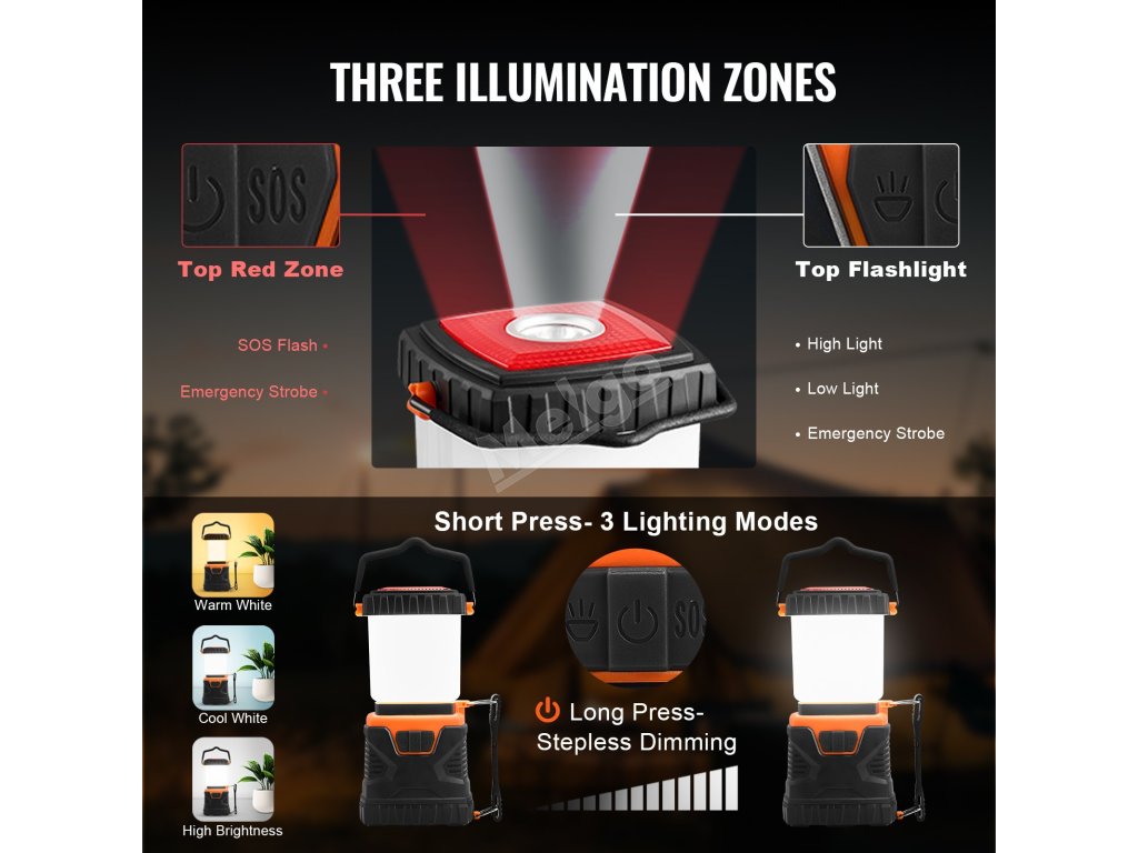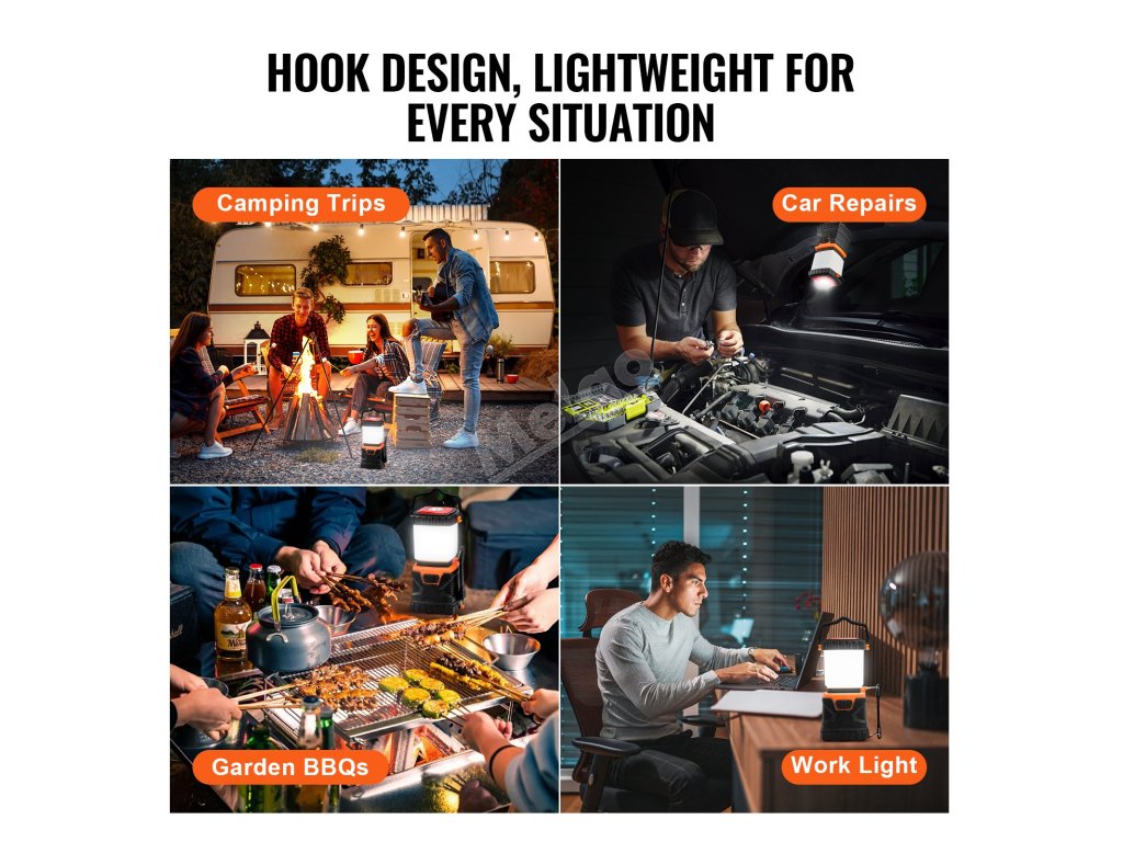 Vhodné pro kempování, turistiku a výpadky proudu. Naše přenosné kempingové světlo je nezbytnou součástí outdoorových dobrodružství a zajistí vám spolehlivé světlo, ať už se vydáte kamkoli. Vezměte si ho s sebou na další dobrodružství a už nikdy se nemusíte bát, že zůstanete potmě.