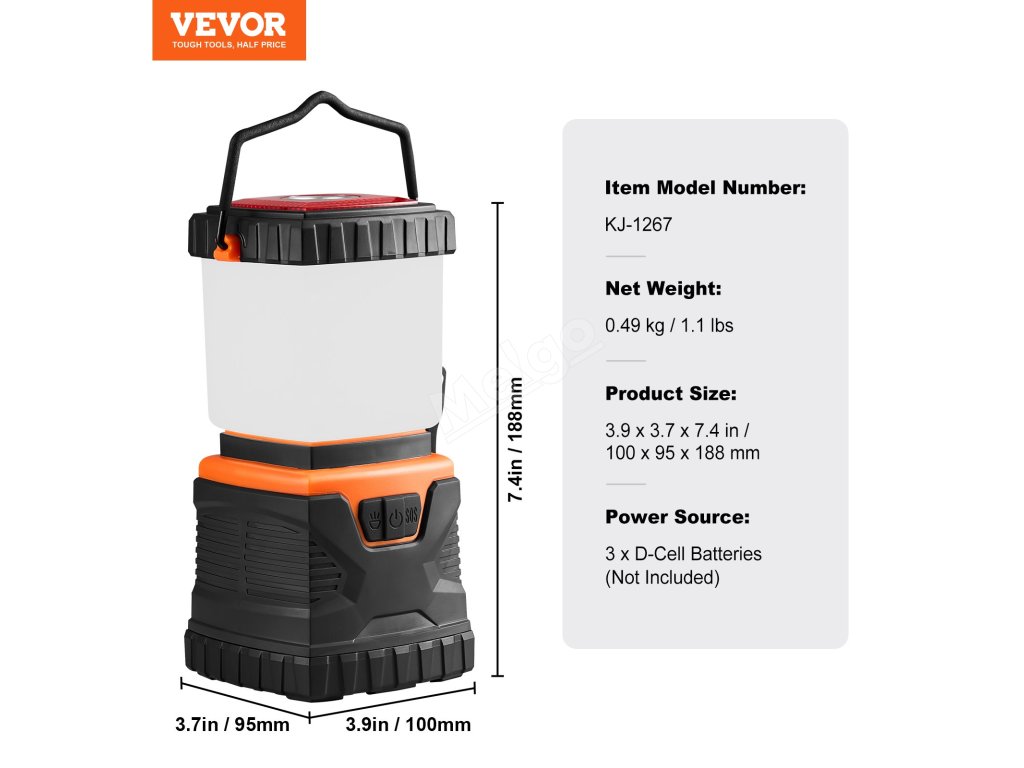 Naše kempingová svítilna používá 3 baterie typu D (nejsou součástí balení). V případě potřeby lze baterie snadno rozebrat a vyměnit. Snadná oprava znamená méně starostí a více radosti z vašich výletů do přírody.