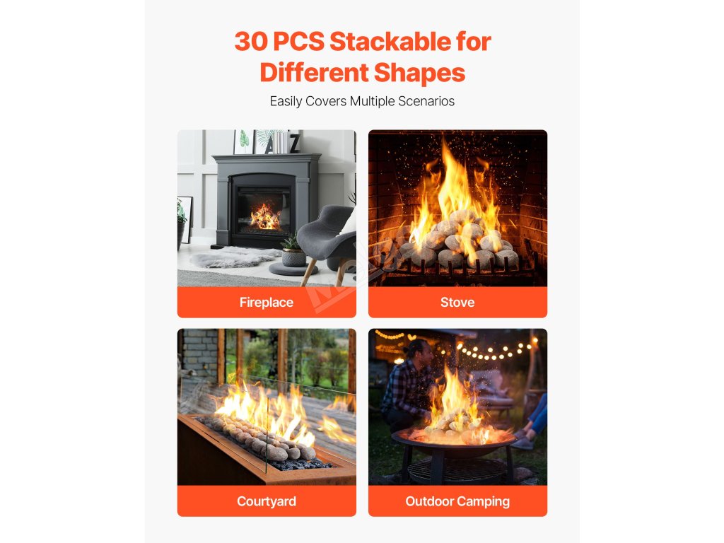 Keramické kameny do topeniště 50.8–76.2 mm, 30 ks, na plyn a venku