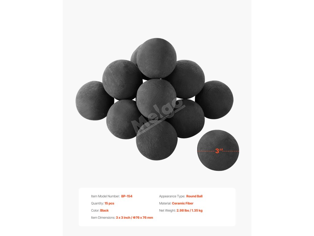 Keramické kuličky do topeniště 76 mm, 15 ks, černé, opakovaně použitelné