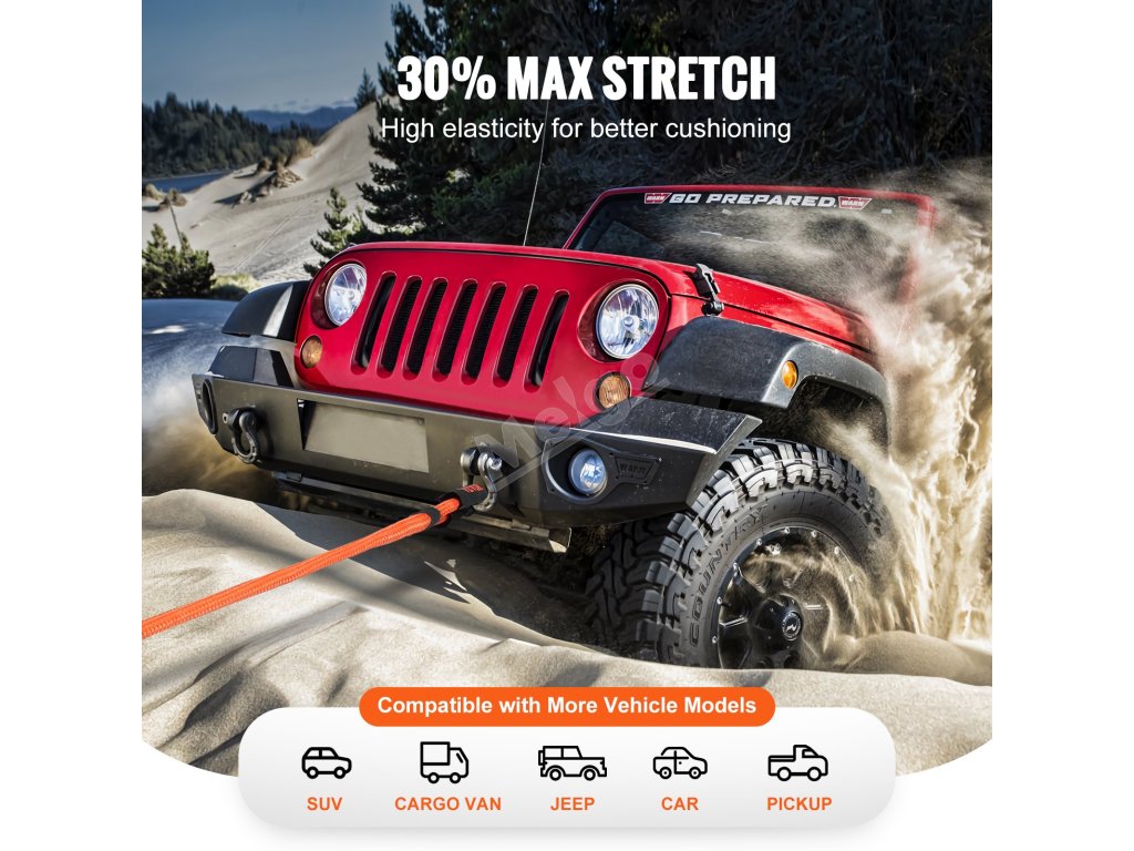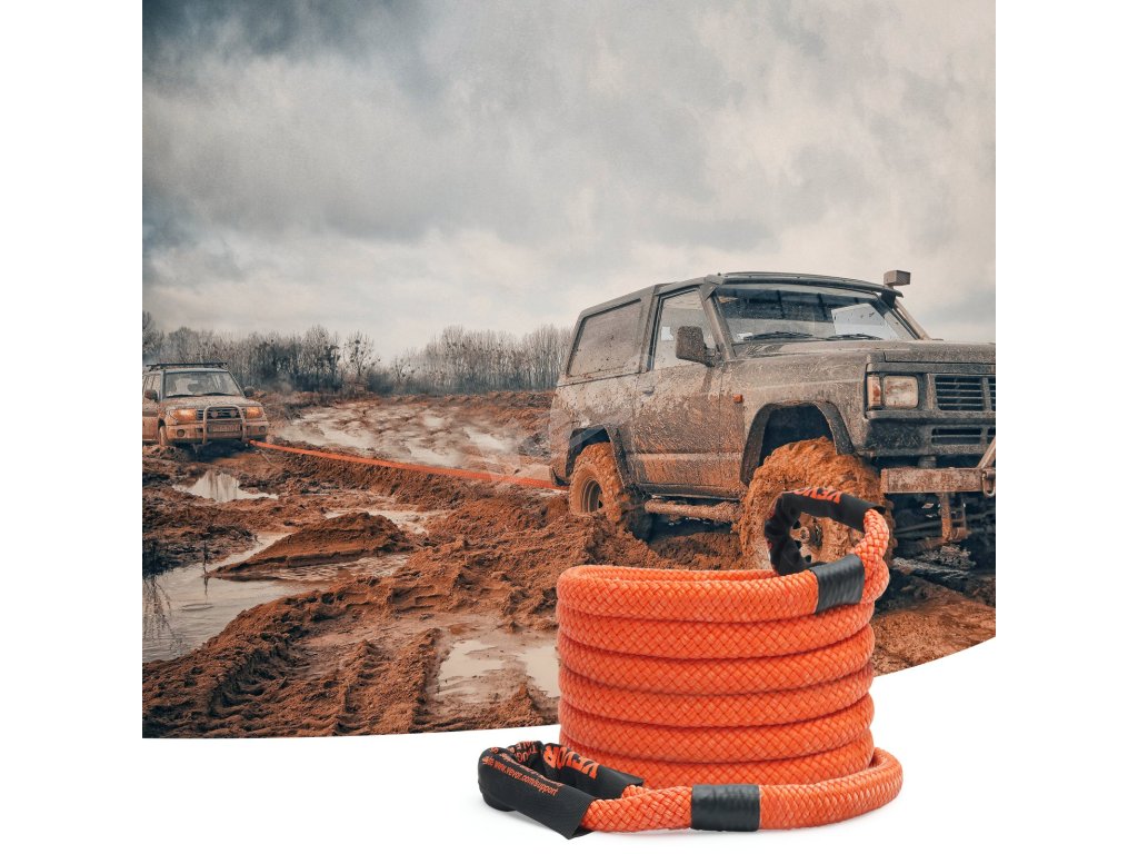 Díky působivé pevnosti v tahu a správné délce je náš tažný popruh vaším pomocníkem při extrémních terénních jízdách a záchranných akcích. Je vyroben z odolného nylonového materiálu a poskytuje vynikající flexibilitu, která zajišťuje bezpečný provoz, snižuje vibrace a chrání vaše milované vozidlo před poškozením.