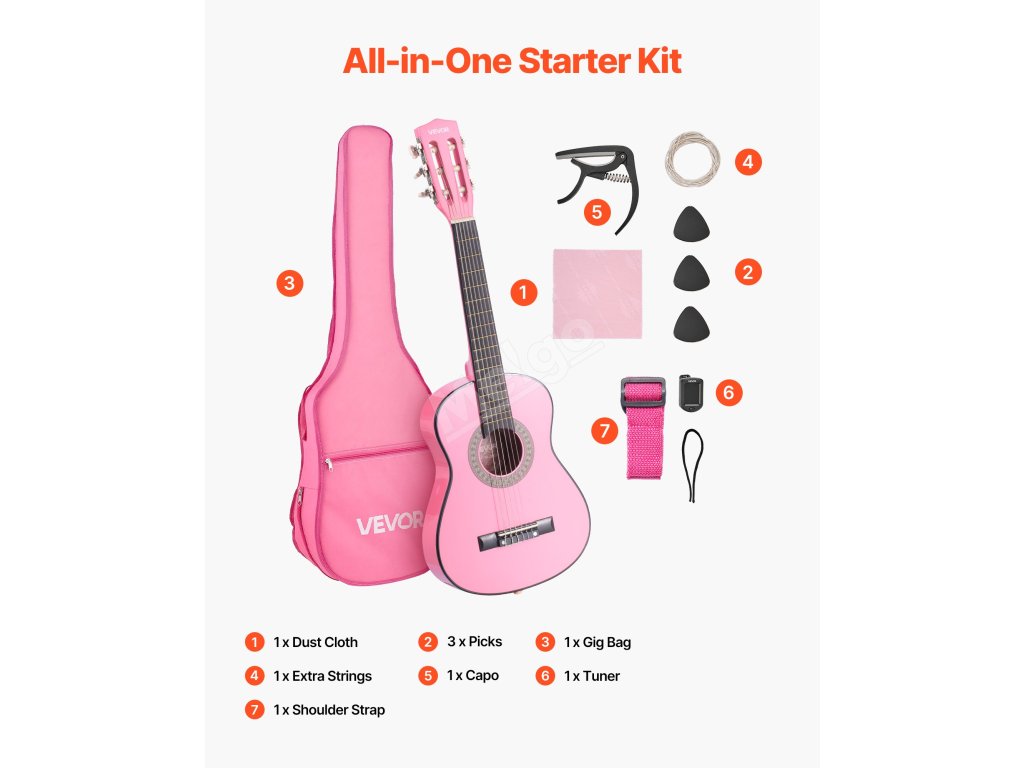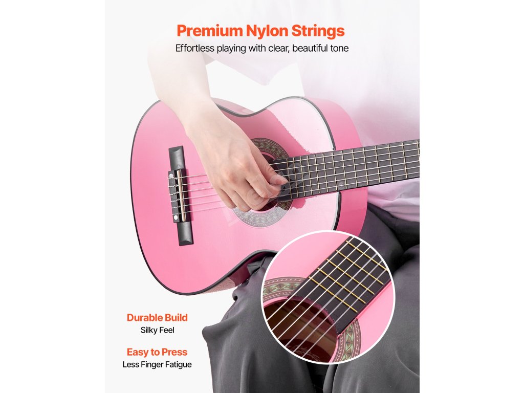 Tato klasická kytara je určena pro začátečníky a mladé hudebníky a kombinuje ručně vyráběnou kvalitu s praktickými funkcemi. Díky zadní straně z masivního dřeva, nylonovým strunám a ladičce je hraní a ladění hračka. S gig bagem a dalším příslušenstvím obsahuje tato sada vše, co potřebujete k zahájení své hudební cesty.