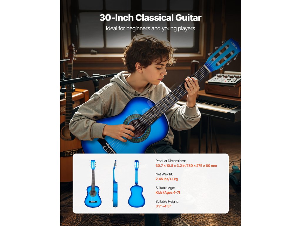 Odpověď: Nabízíme klasické kytary o velikosti 30", 36" a 38", které jsou vhodné pro hráče všech věkových kategorií: 38" Full-Size: pro dospělé a dospívající od 175 cm.Velikost 36": pro děti ve věku 7-11 let, výška 4'3"-4'11".Velikost 30": pro mladší děti ve věku 4-7 let, výška 3'7"-4'3".
