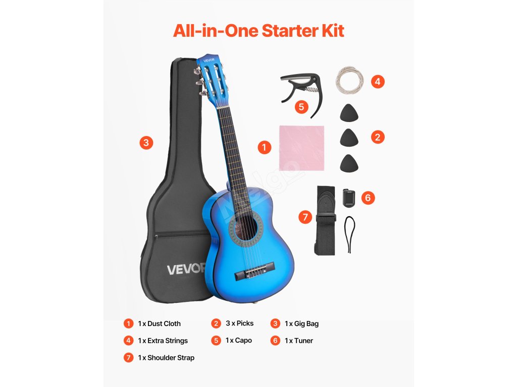 Odpověď Každá kytara je dodávána s kompletní sadou potřeb pro začátečníky: kytarovou taškou, utěrkou proti prachu, náhradními strunami, popruhem, kapodastrem, digitální ladičkou a 3 trsátky. Jedná se o kompletní sadu pro začátečníky - ideální pro začínající hráče.