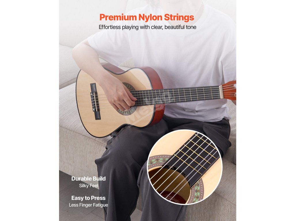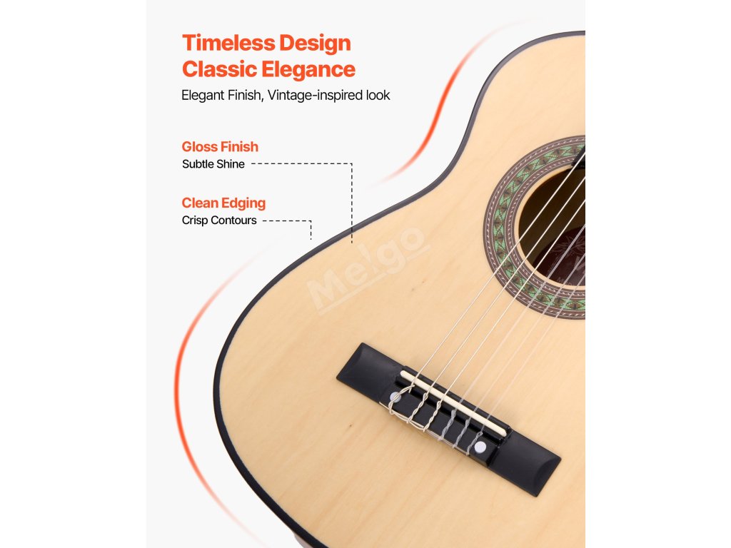 Tato klasická kytara je určena pro začátečníky a mladé hudebníky a kombinuje ručně vyráběnou kvalitu s praktickými funkcemi. Díky zadní straně z masivního dřeva, nylonovým strunám a ladičce je hraní a ladění hračka. S gig bagem a dalším příslušenstvím obsahuje tato sada vše, co potřebujete k zahájení své hudební cesty.