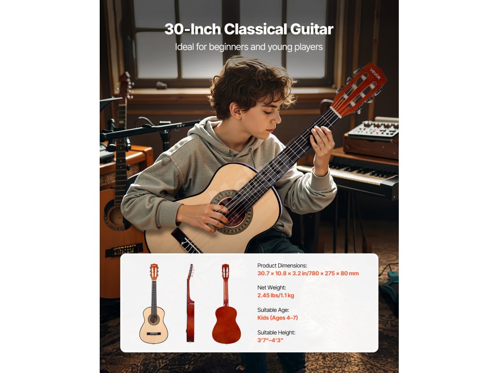 Odpověď: Nabízíme klasické kytary o velikosti 30", 36" a 38", které jsou vhodné pro hráče všech věkových kategorií: 38" Full-Size: pro dospělé a dospívající od 175 cm.Velikost 36": pro děti ve věku 7-11 let, výška 4'3"-4'11".Velikost 30": pro mladší děti ve věku 4-7 let, výška 3'7"-4'3".