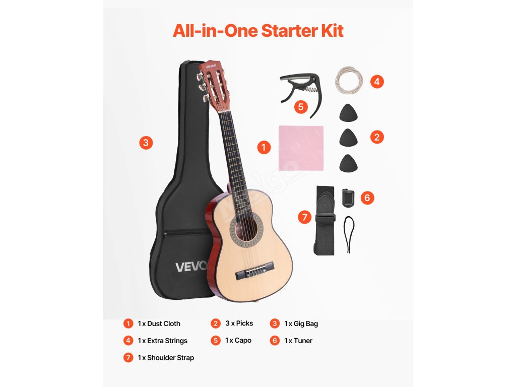 Odpověď Každá kytara je dodávána s kompletní sadou potřeb pro začátečníky: kytarovou taškou, utěrkou proti prachu, náhradními strunami, popruhem, kapodastrem, digitální ladičkou a 3 trsátky. Jedná se o kompletní sadu pro začátečníky - ideální pro začínající hráče.