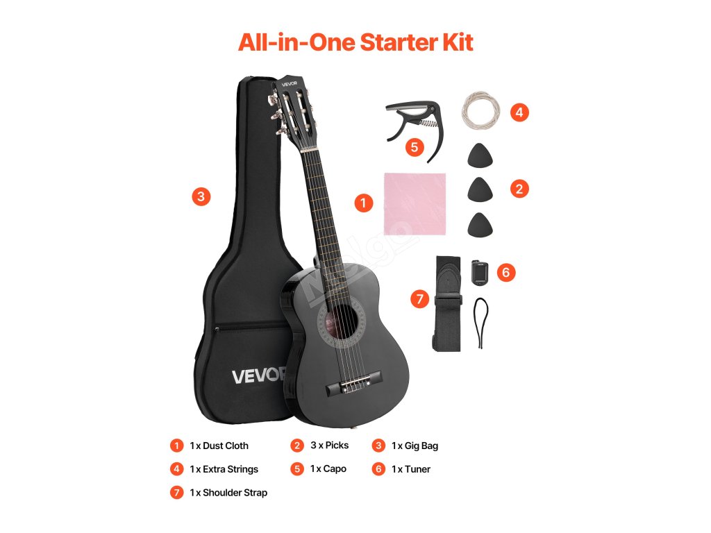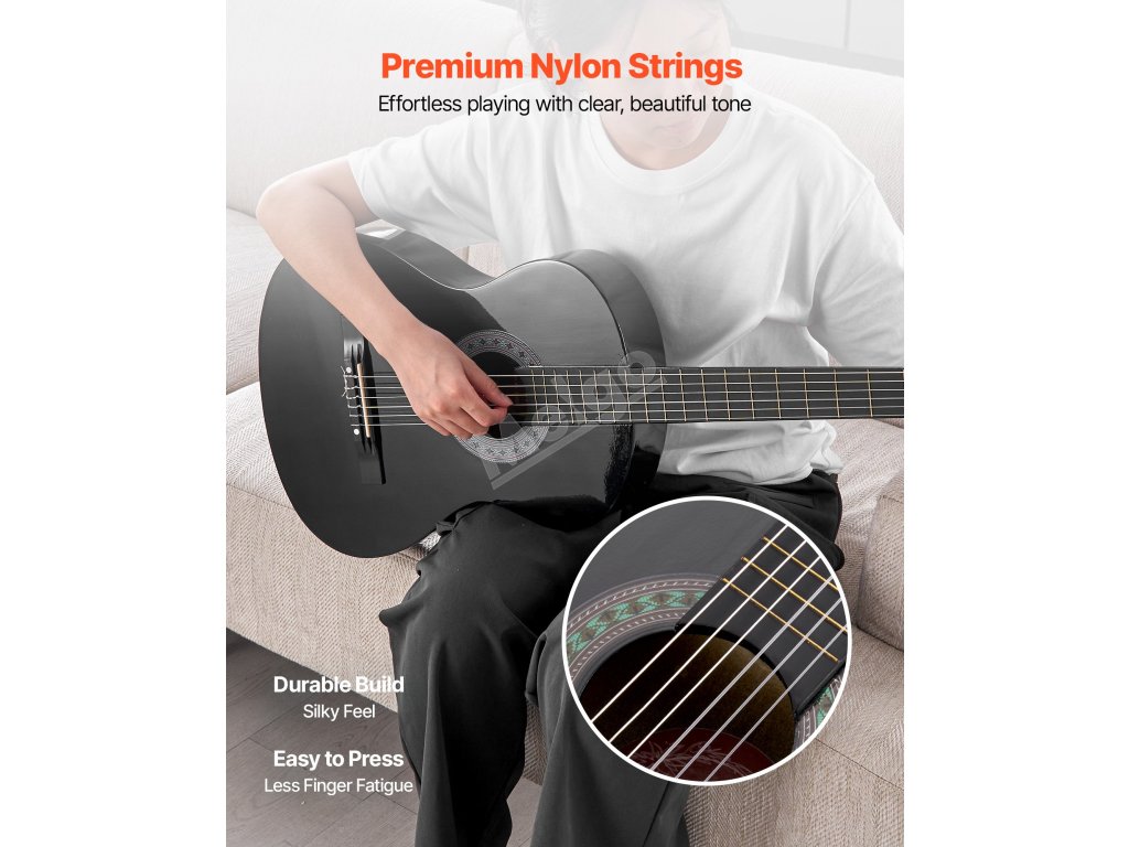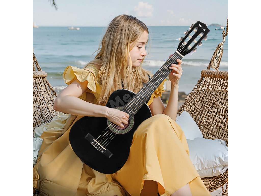 Tato klasická kytara je určena pro začátečníky a mladé hudebníky a kombinuje ručně vyráběnou kvalitu s praktickými funkcemi. Díky zadní straně z masivního dřeva, nylonovým strunám a ladičce je hraní a ladění hračka. S gig bagem a dalším příslušenstvím obsahuje tato sada vše, co potřebujete k zahájení své hudební cesty.