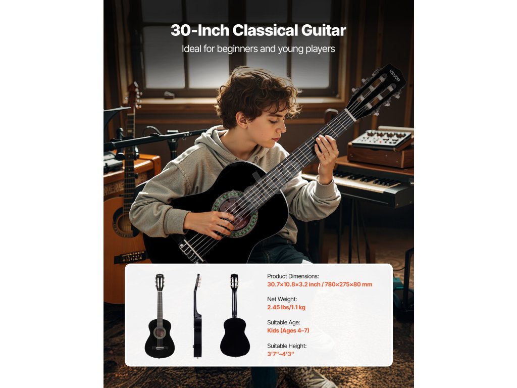 Odpověď: Nabízíme klasické kytary o velikosti 30", 36" a 38", které jsou vhodné pro hráče všech věkových kategorií: 38" Full-Size: pro dospělé a dospívající od 175 cm.Velikost 36": pro děti ve věku 7-11 let, výška 4'3"-4'11".Velikost 30": pro mladší děti ve věku 4-7 let, výška 3'7"-4'3".