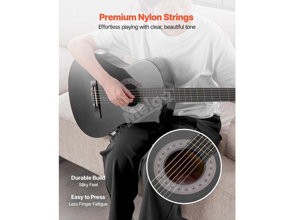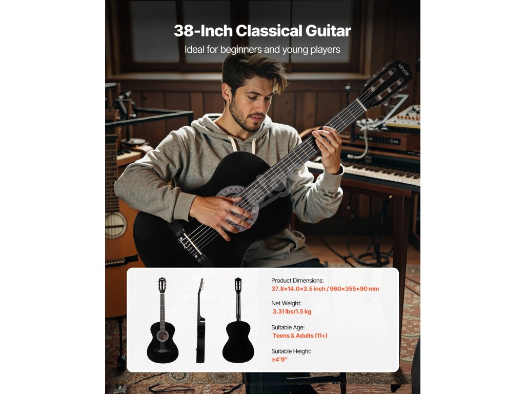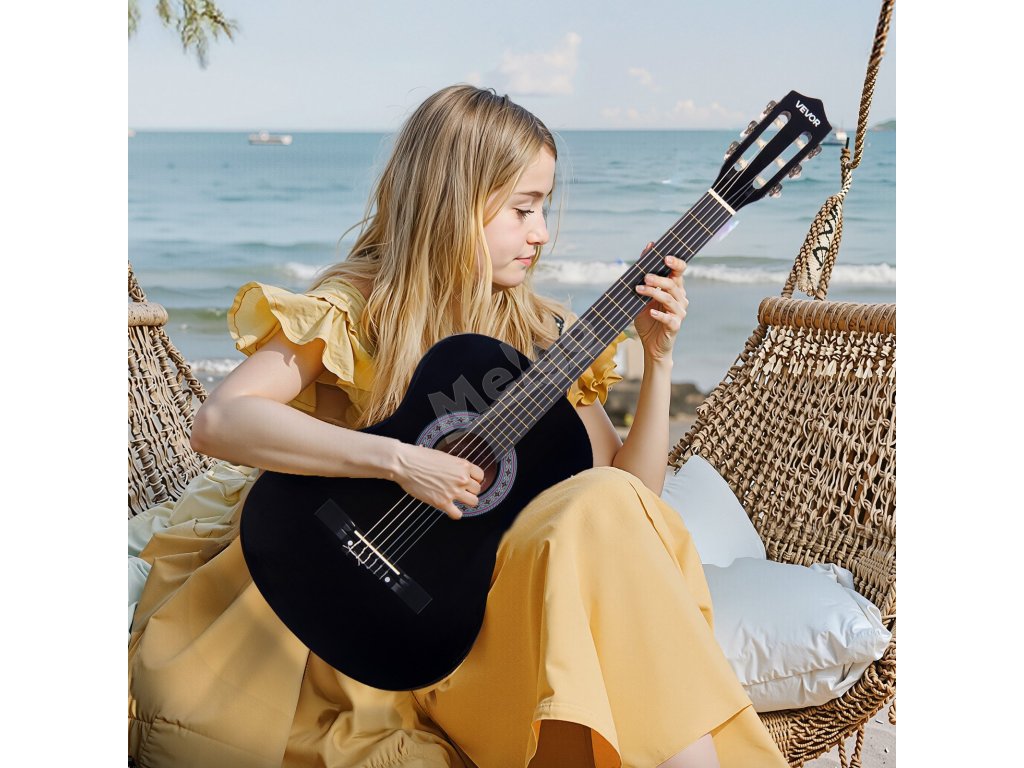 Tato klasická kytara je určena pro začátečníky a mladé hudebníky a kombinuje ručně vyráběnou kvalitu s praktickými funkcemi. Zadní deska z masivního dřeva, nylonové struny a ladička usnadňují hraní a ladění. S gig bagem a dalším příslušenstvím obsahuje tato sada vše, co potřebujete k zahájení své hudební cesty.