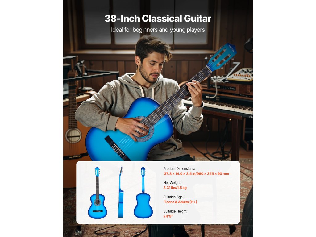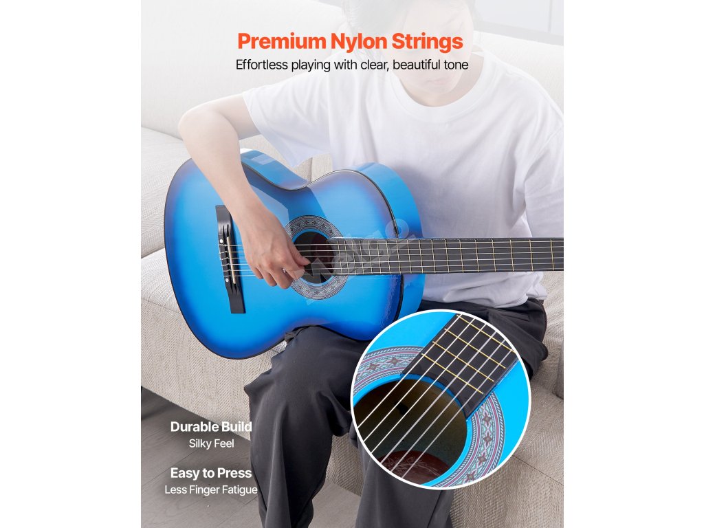 Tato klasická kytara je určena pro začátečníky a mladé hudebníky a kombinuje ručně vyráběnou kvalitu s praktickými funkcemi. Díky zadní straně z masivního dřeva, nylonovým strunám a ladičce je hraní a ladění hračka. S gig bagem a dalším příslušenstvím obsahuje tato sada vše, co potřebujete k zahájení své hudební cesty.