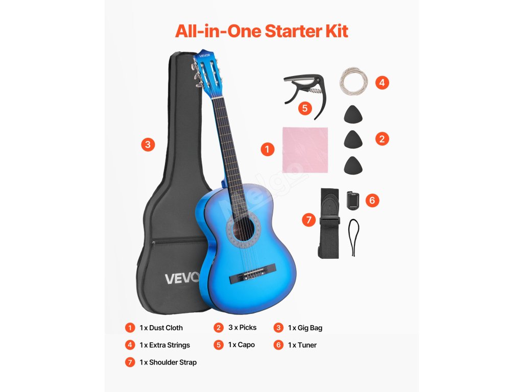 Odpověď Každá kytara je dodávána s kompletní sadou potřeb pro začátečníky: kytarovou taškou, utěrkou proti prachu, náhradními strunami, popruhem, kapodastrem, digitální ladičkou a 3 trsátky. Jedná se o kompletní sadu pro začátečníky - ideální pro začínající hráče.