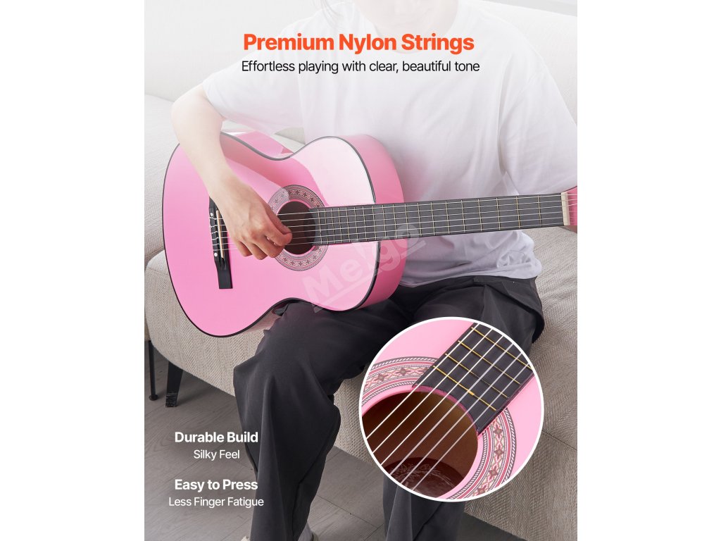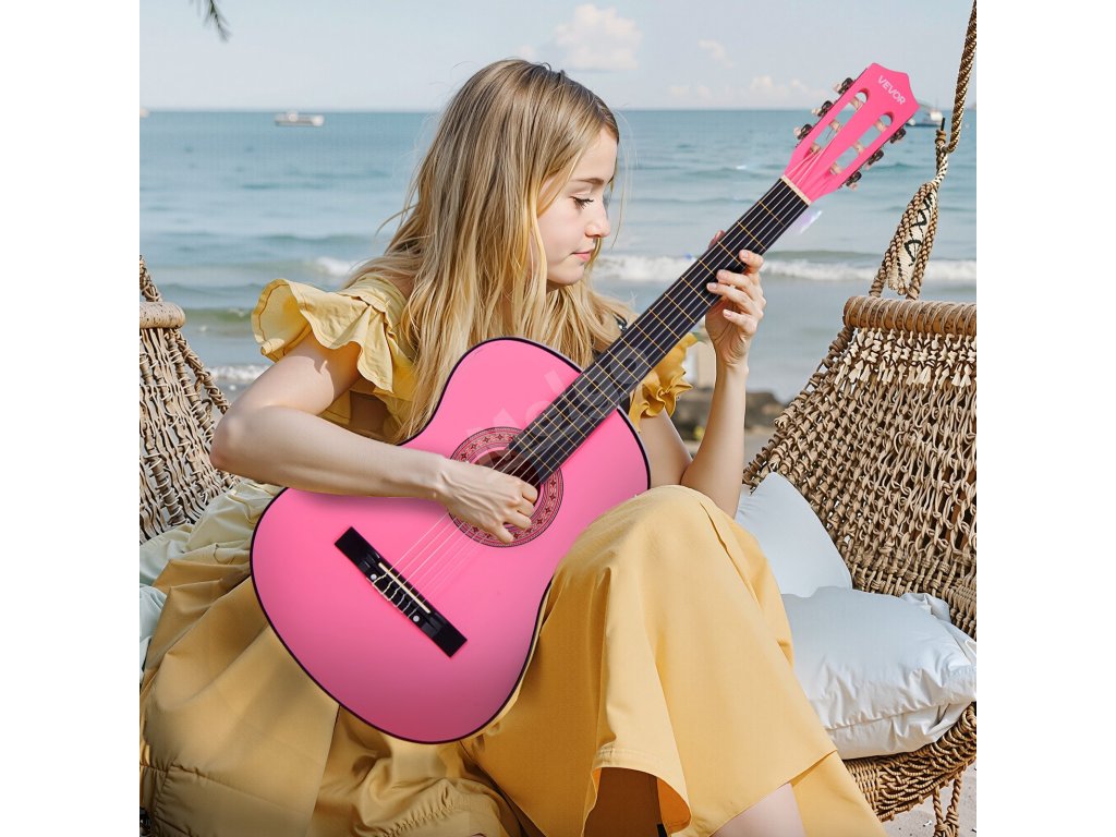 Klasická kytara 960 mm, lipové dřevo, nylonové struny, pouzdro, růžová