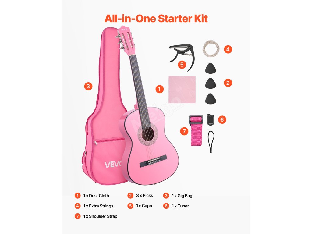 Odpověď Každá kytara je dodávána s kompletní sadou potřeb pro začátečníky: kytarovou taškou, utěrkou proti prachu, náhradními strunami, popruhem, kapodastrem, digitální ladičkou a 3 trsátky. Jedná se o kompletní sadu pro začátečníky - ideální pro začínající hráče.