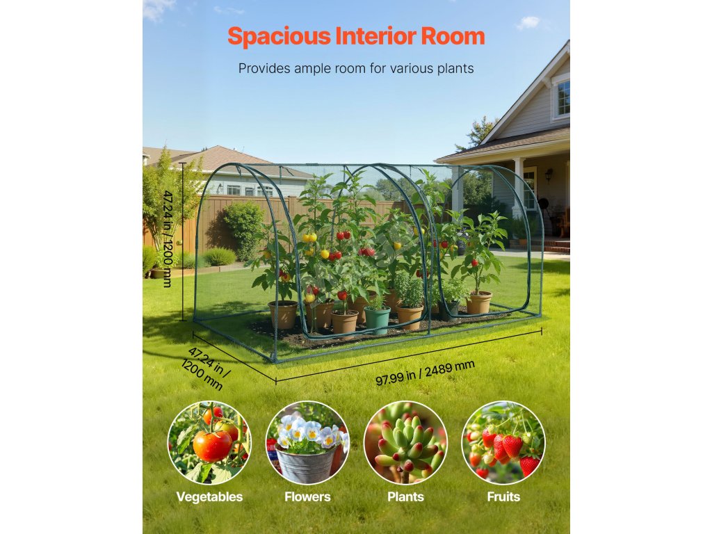 Klec na rostliny 2.48×1.2×1.2 m s vchodem na zip odolná větru