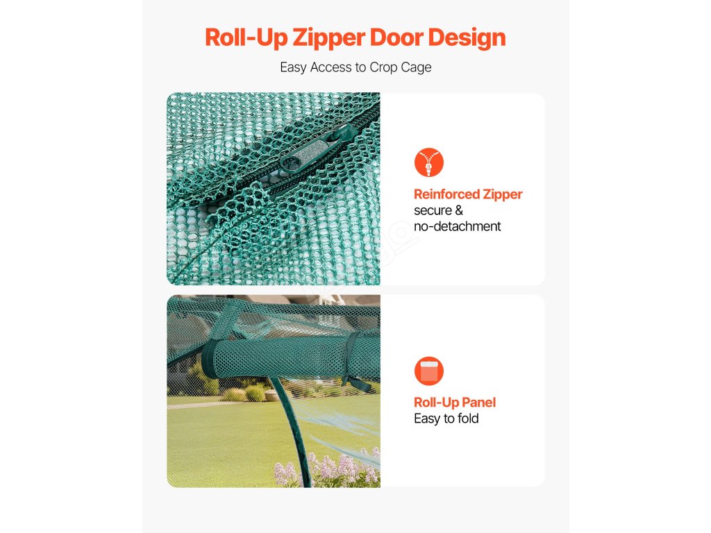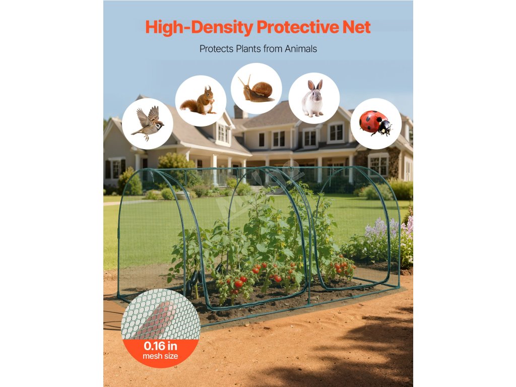 Tento kryt na rostliny je vybaven praktickými dvířky na zip, která usnadňují péči o rostliny. Dvířka se zapínají na zip a vytvářejí bezpečnou bariéru proti drobným živočichům, nebo se rozepínají, abyste měli snadný přístup k rostlinám a mohli se o ně bezproblémově starat.