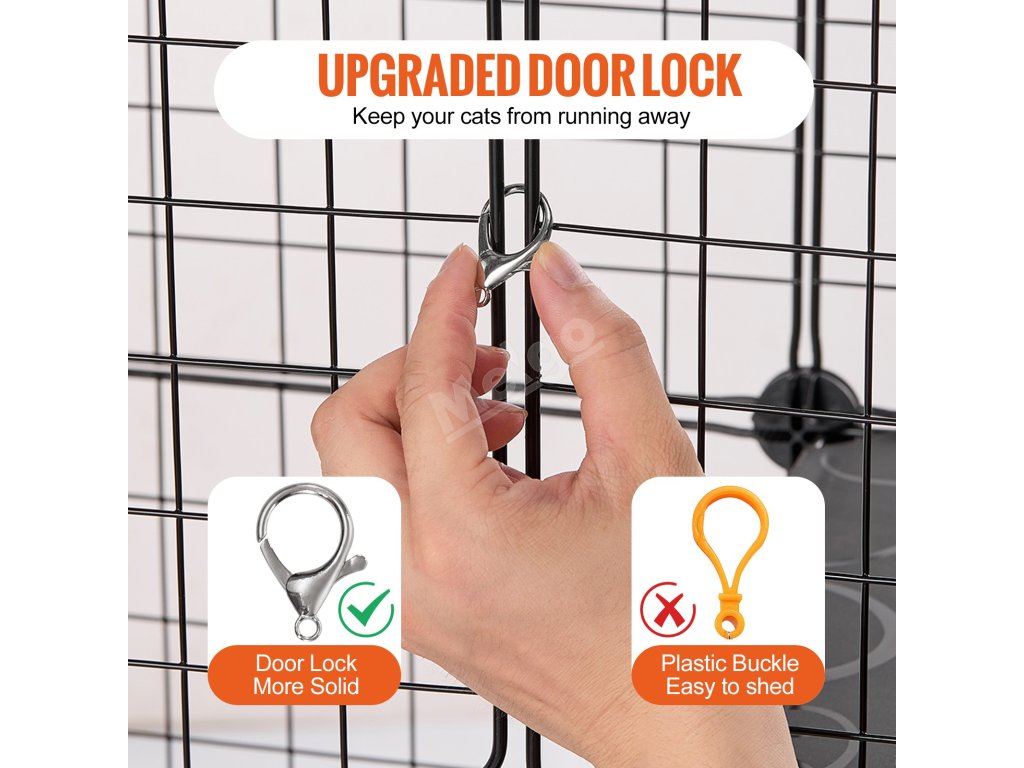 Klec pro kočky je podepřena robustními kovovými rámy a vyztuženými plastovými deskami z PVC, které jsou poměrně stabilní pro hraní nebo odpočinek hubených a baculatých koček. Váš kočičí kamarád si v naší kleci pro kočky může být jistý, že si užije prostorný prostor k odpočinku.