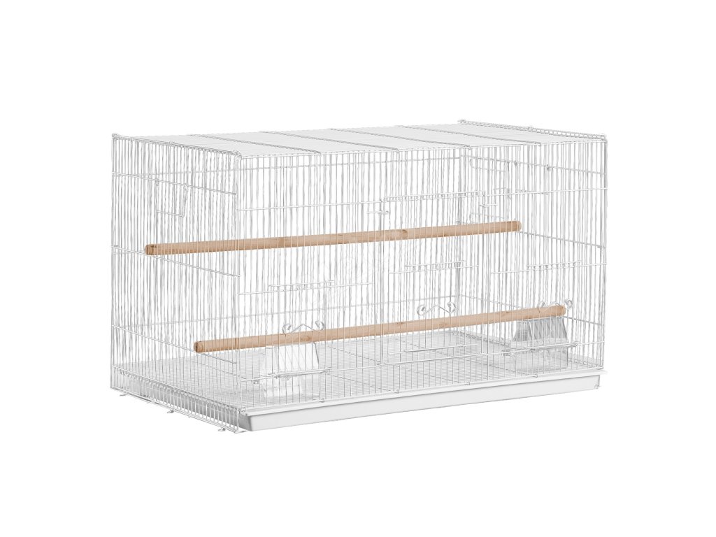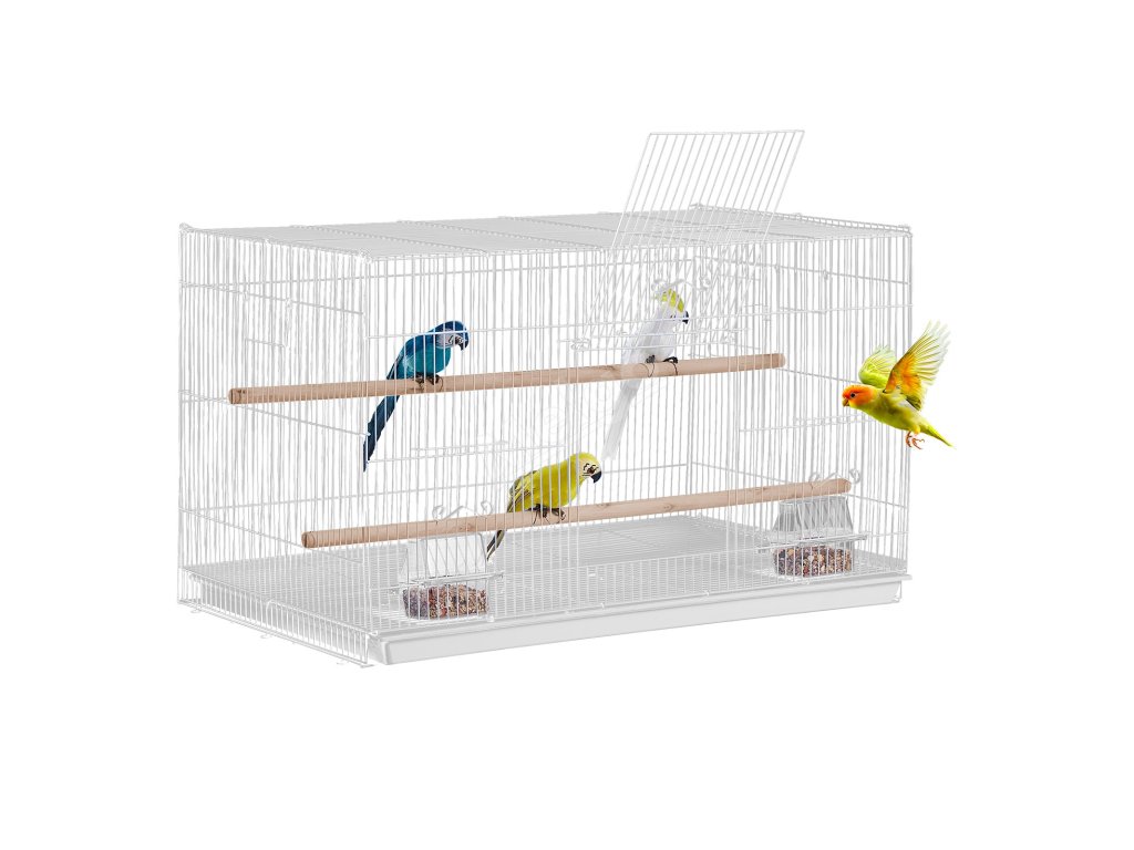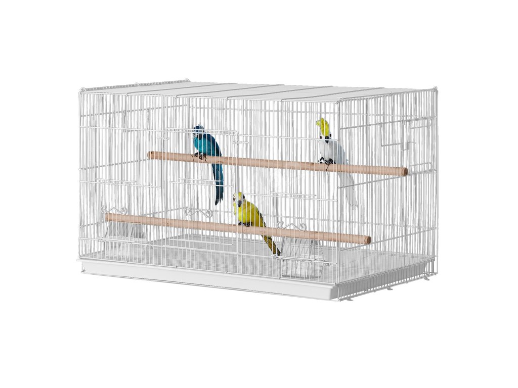 Klec pro papoušky 18 in kovová, 2 bidla, 2 misky, bílá