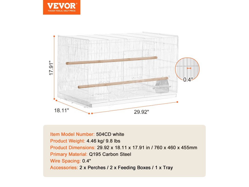 Velkoprostorová klec pro ptáky o rozměrech 30x18x18 palců má pevnou a stabilní konstrukci. Má bezpečnou konstrukci dvířek, která usnadňují otevírání a zavírání klece, což je užitečné pro každodenní krmení, čištění a správu. Klec poskytuje ptákům bezpečný a zdravý domov.