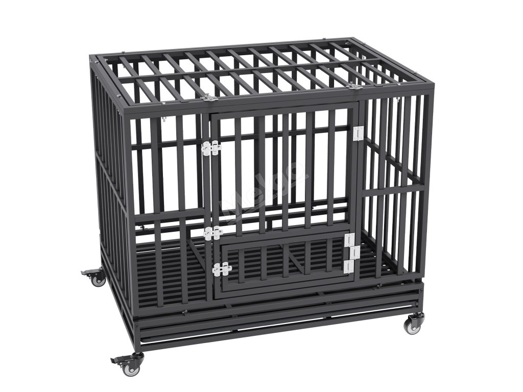 Klec pro psa 42 inch, 3 dvířka, střední a velká, kolečka, tác
