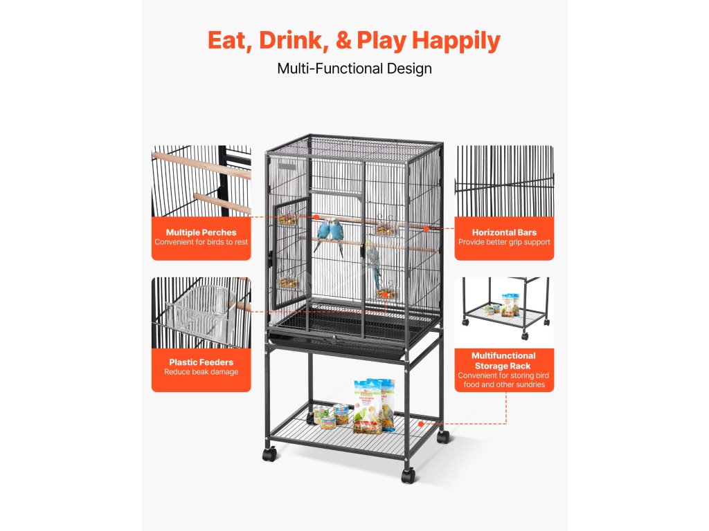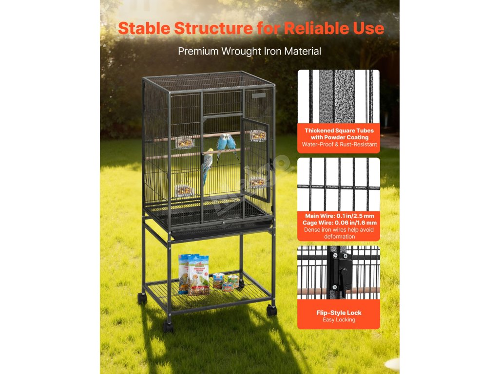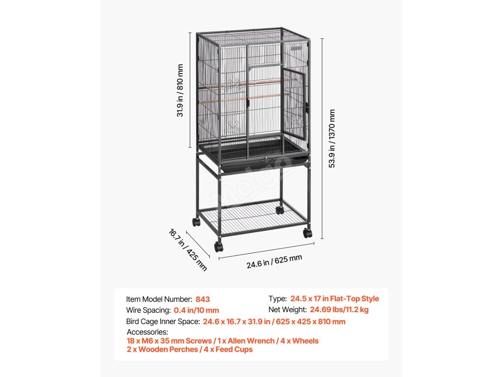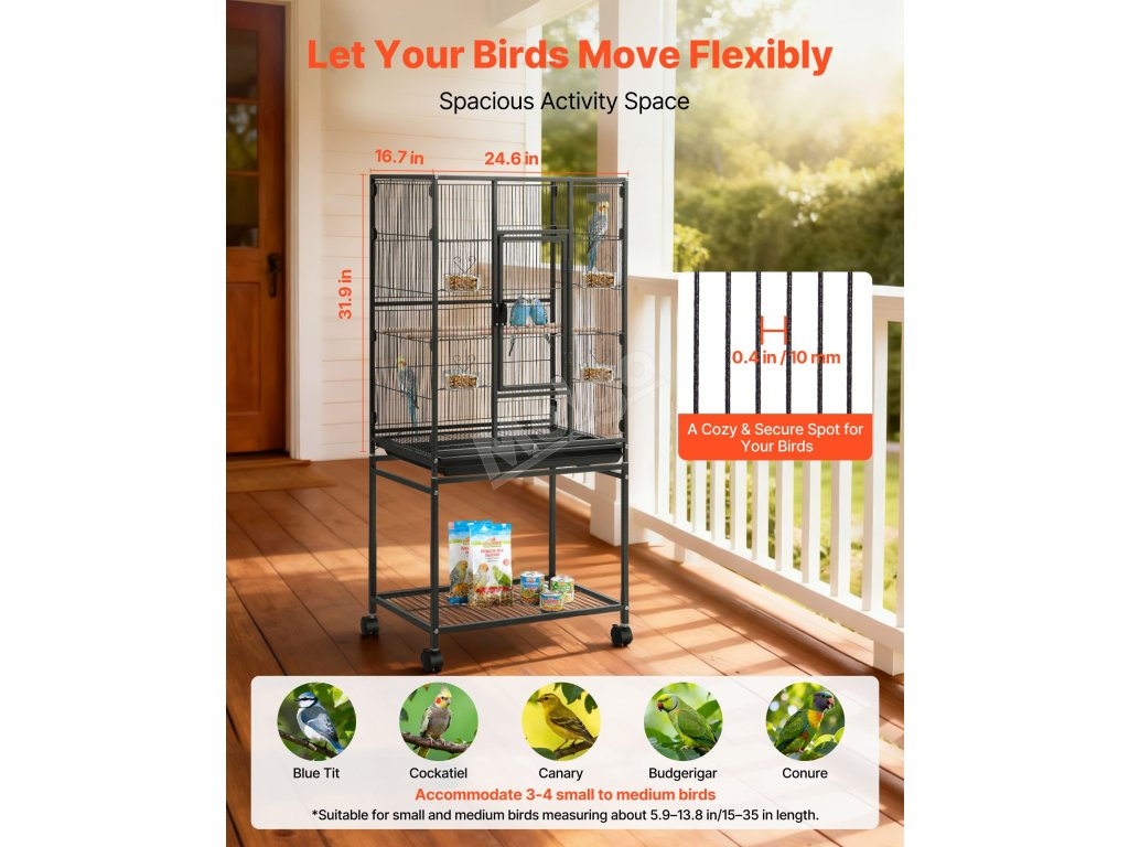 Tato ptačí klec o rozměrech 24,6 x 16,7 palce s roztečí prutů 0,4 palce poskytuje dostatek prostoru pro aktivity pěnkav, holubů, kohoutů, slípek, kanárků a dalších ptáků. SKU4