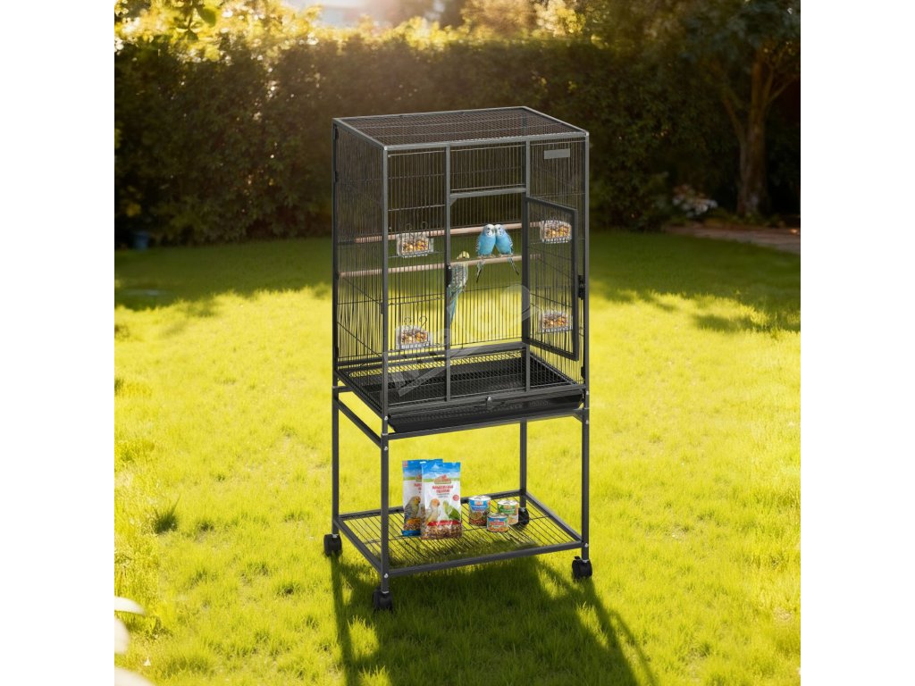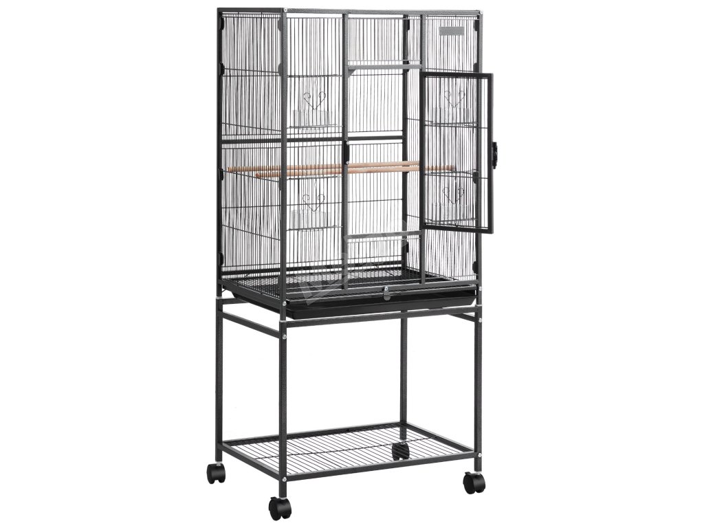 Klec pro ptáky 625×425×1370 mm, plochý vrch, krmítka, kolečka